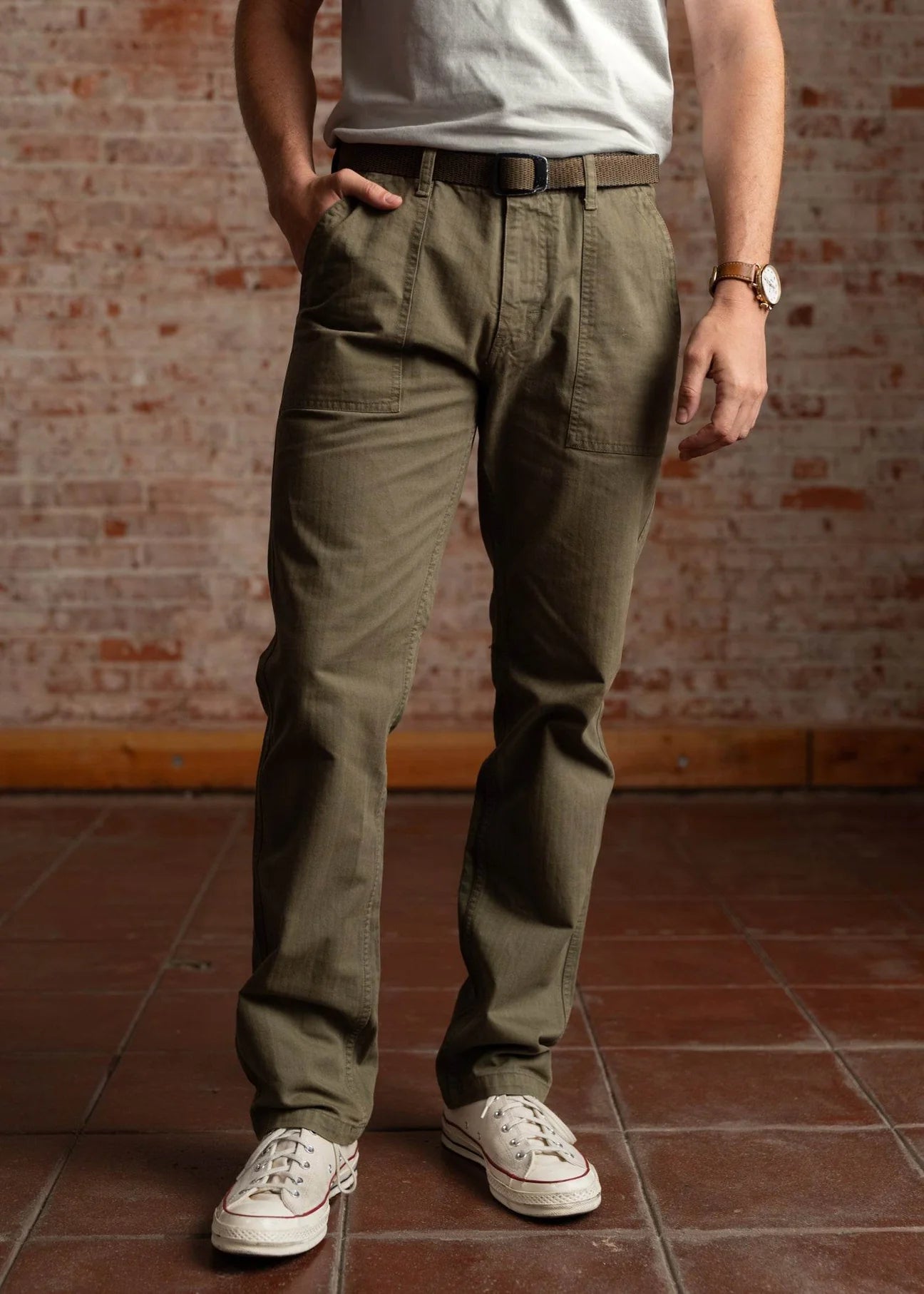 IRON & RESIN - Timeless fatigue styling meets enduring craftsmanship in the Herringbone Brigade Pant. Constructed from 9.5 oz herringbone cotton, garment dyed and triple washed for authentic character, this pant features four functional pockets, YKK hardware, and a 33" inseam. Designed to be worn and lived in, it's a wardrobe essential that only improves with age.